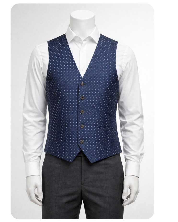 Düğmeli Lacivert Puantiyeli Erkek Yelek