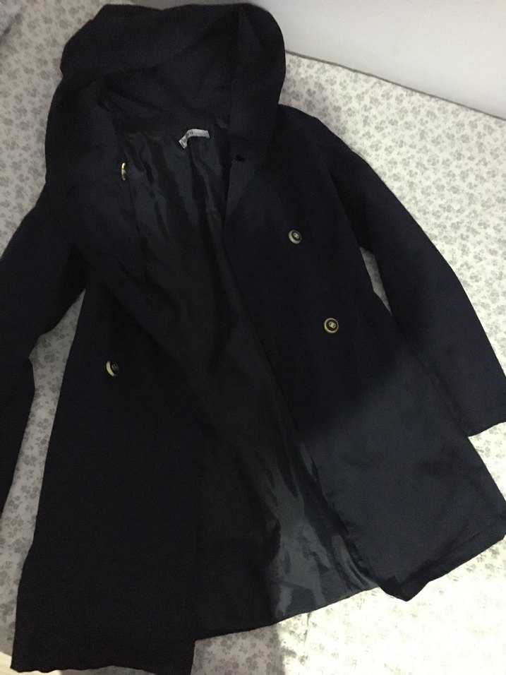 Düğmeli, siyah, midi uzunlukta, uzun kollu, yumuşak ve sıcak kumaştan yapılmış, minimal tasarımlı trenchcoat s m uyumludur