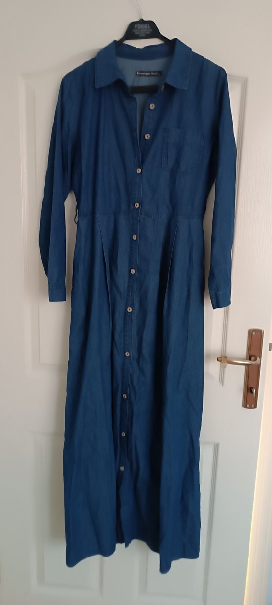 Düğmeli Lacivert Uzun Denim Elbise