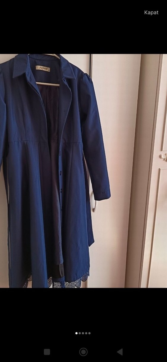 Düğmeli, notched lapel yakalı, uzun kollu lacivert kaban Sentetik kumaştan, günlük rahat kullanım için uygun.