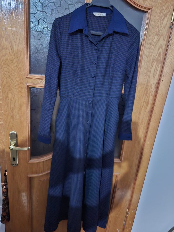 Düğmeli Lacivert Uzun Kadın Elbise 38 beden