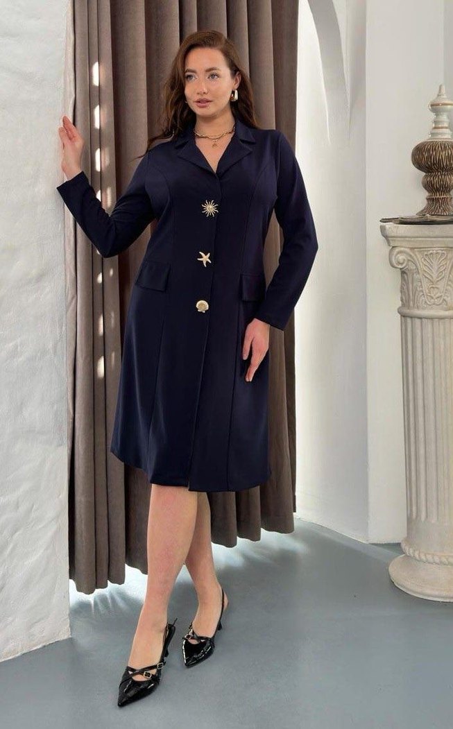 Düğmeli Lacivert Uzun Kadın Takım Elbise