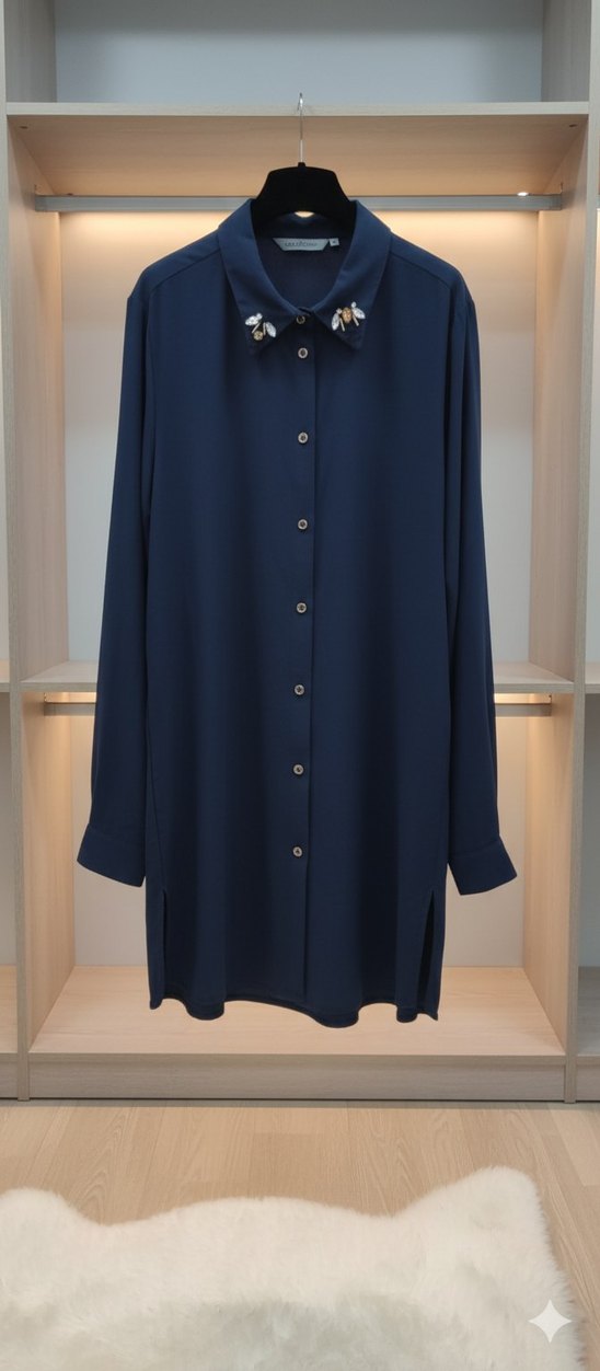 Düğmeli Lacivert Uzun Kollu Tunik