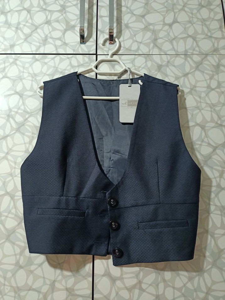 Düğmeli, yakalı ve kolsuz kadın yelek. Sentetik kumaştan, normal boy ve regular fit. İş ortamları için uygun.