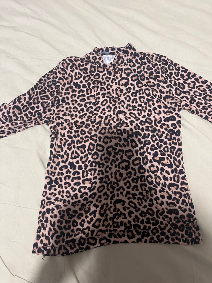 Düğmeli, uzun kollu, boğazlı ve leopar desenli bu dar kesim bluz, sentetik kumaştan üretilmiş olup günlük kullanıma uygundur.