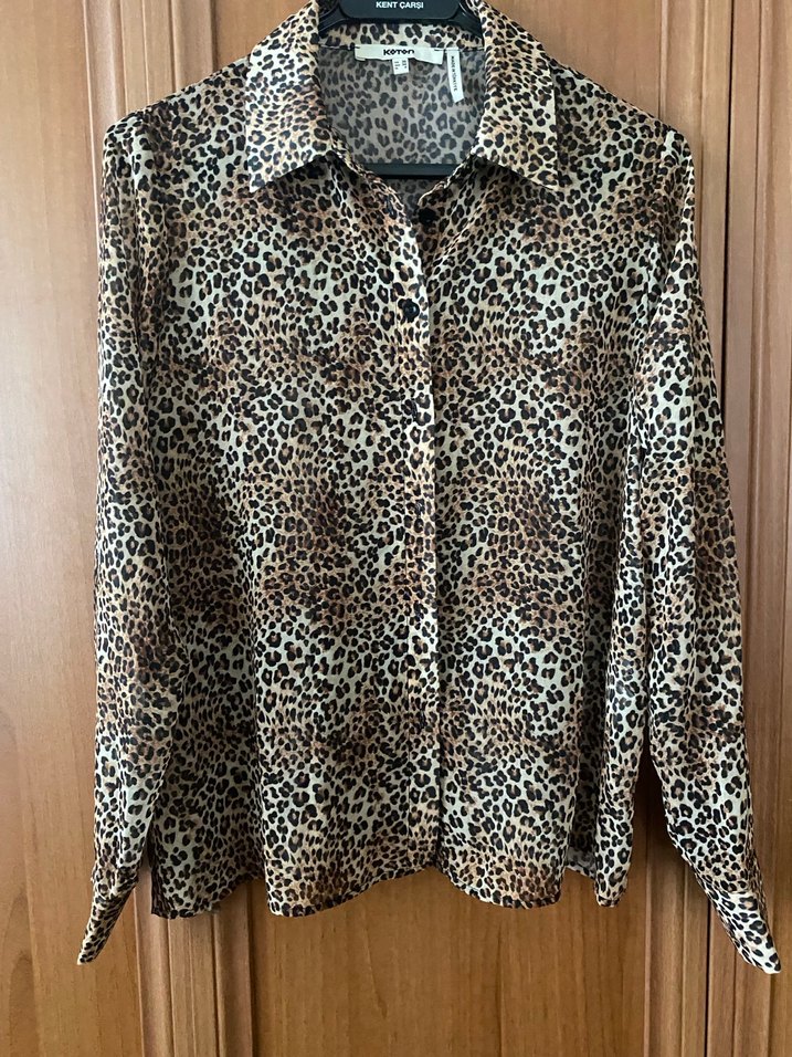 Düğmeli Leopar Desenli Uzun Kollu Kadın Gömlek