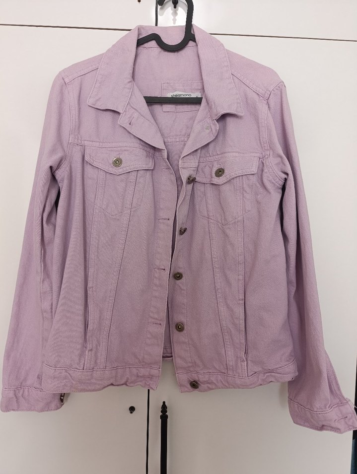 Düğmeli, lila pastel renkte, keten kumaştan, normal uzunlukta ve regular fit kesime sahip kadın denim ceketi. Notched lapel yaka ve uzun kolludur. Günlük kullanıma uygundur.