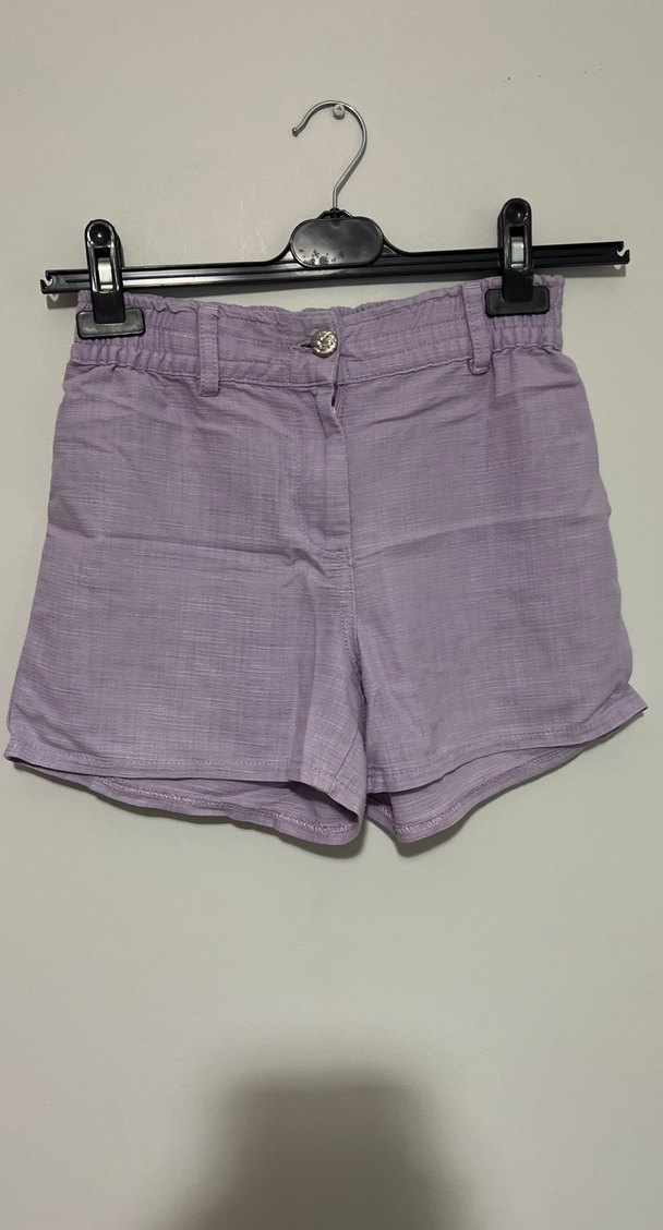 Düğmeli Lila Keten Kız Şortu