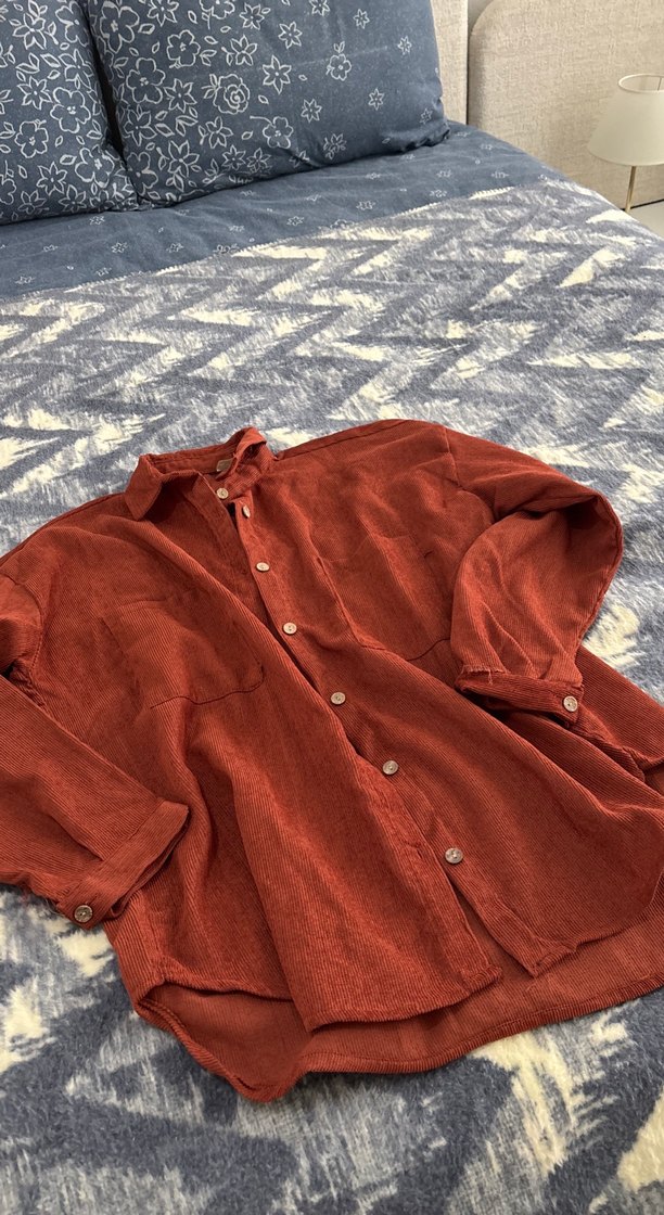 Kahverengi keten gömlek, düğmeli, uzun kollu ve yakalıdır. Loose fit kesimi ve normal boyuyla günlük rahat kullanıma uygundur. Az bişey deforme vardır fotoğraf da belirttim