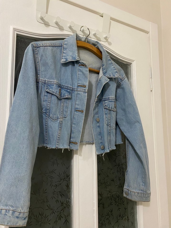 Bu loose fit mavi denim ceket, uzun kollu düğmeli ve yakası kesik detaylıdır. Günlük kullanıma uygun rahat bir sokak stili sunar. Kısa kesimi ve kesik detaylarıyla trend bir görünüme sahiptir.