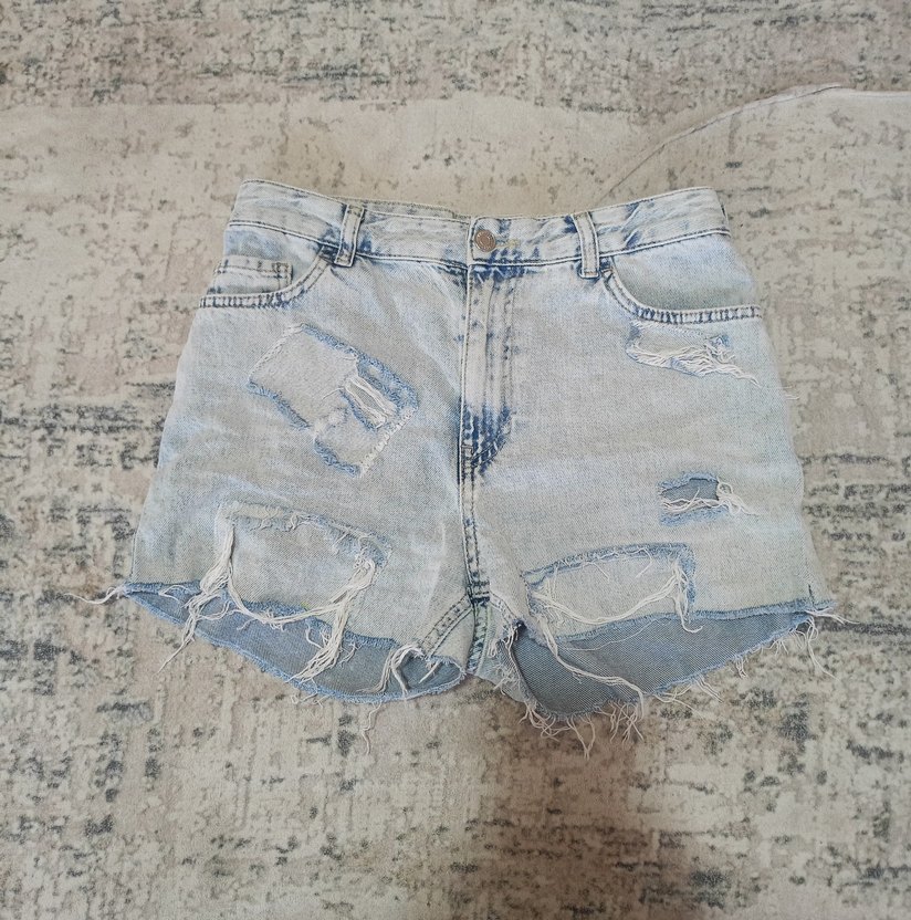 Lcw Jeans W30 /40 Düğmeli, yırtık detaylı loose fit mini kot şort, rahat ve bohem tarzlar için uygun. beli 37 cm bacak boyu 31 cm