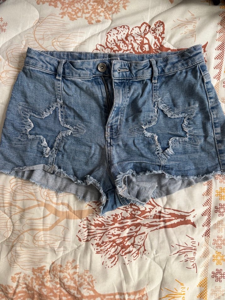 Düğmeli, bağlama desenli mavi kot şortlar, bol kesimi ve kısa boyuyla günlük sokak stiline uygundur. Retro tarzda rahat bir seçimdir.