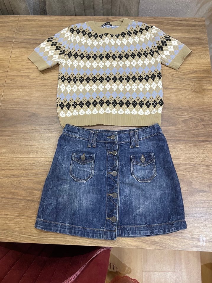 Düğmeli ön kısmı ve koyu mavi batik deseniyle kot mini etek, günlük rahat sokak tarzına uygun. Hüç bir defosu yok sorunsuz. Kilo aldığım için giyemiyorum. S bedene uygun. Ölçüler resimlerde mevcut.