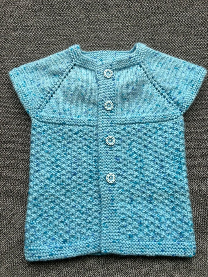 Düğmeli mavi renk örgü yeni bebek yeleği