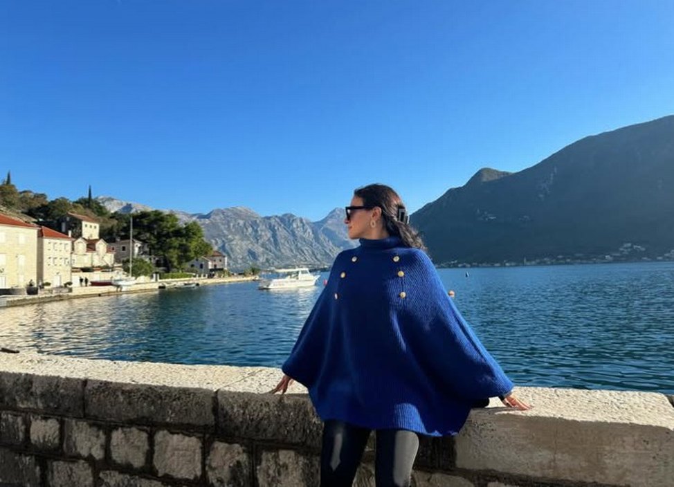 Kadınlar için parlak mavi renkte, düğmeli ve boğazlı triko. Uzun kollu, bol kesim ve midi boyda, rahat günlük kullanım için uygundur.