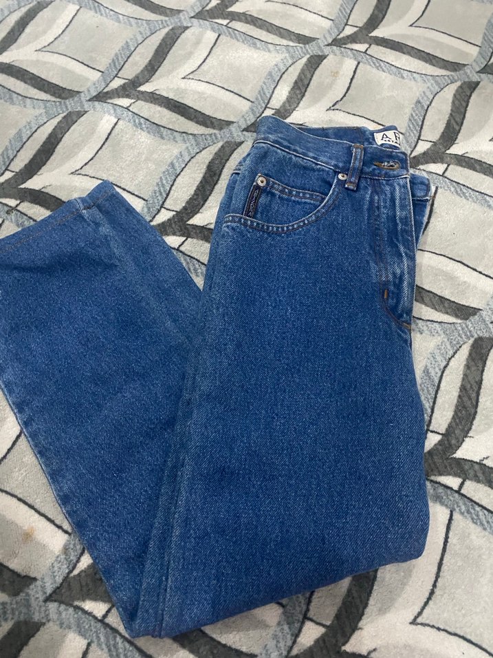 Düğmeli Mavi Bol Kesim Denim Kadın Pantolon