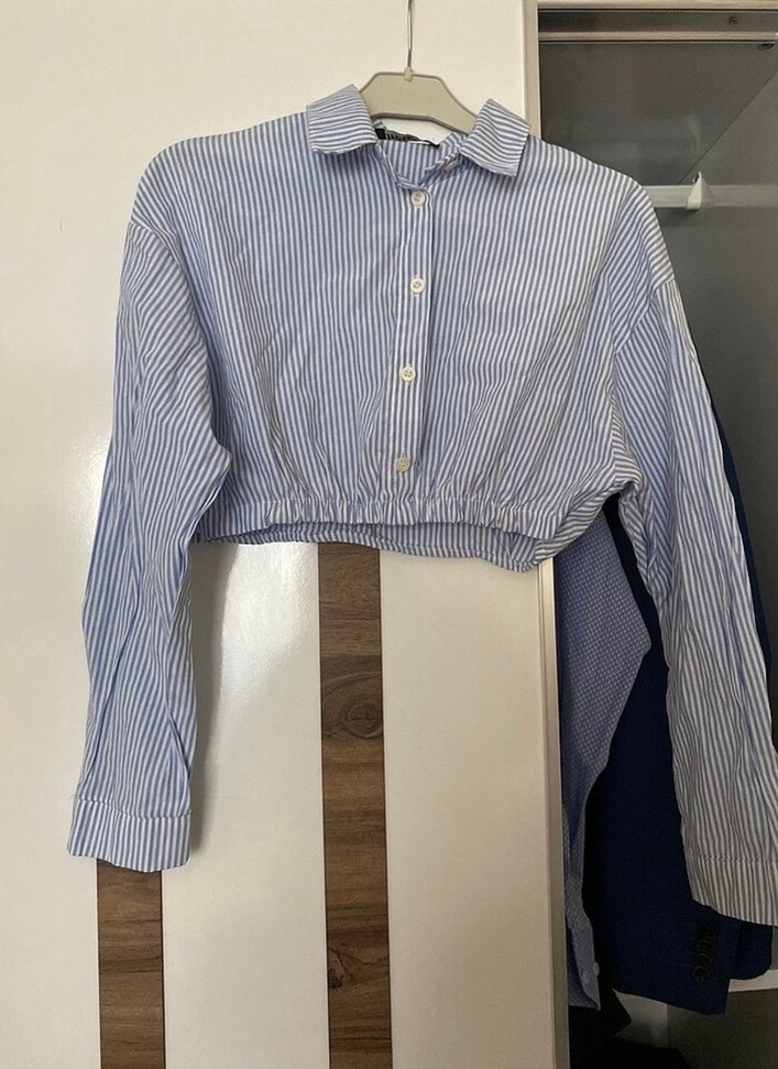 Düğmeli Mavi Çizgili Pamuklu Kadın Gömlek