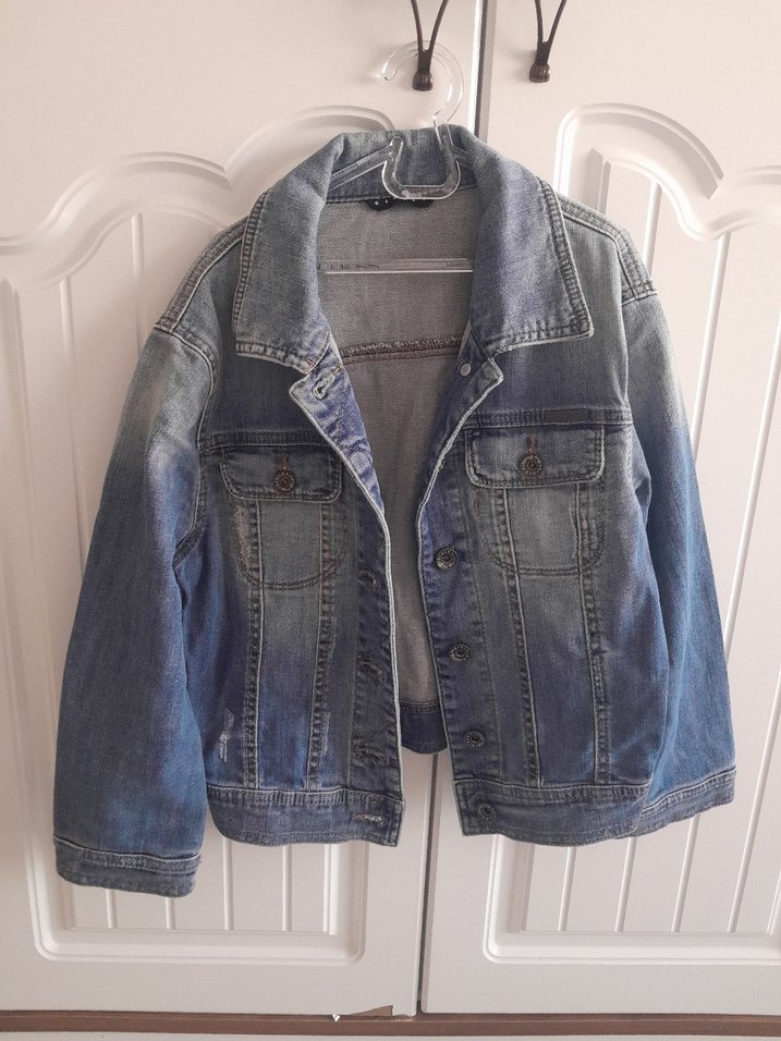 Düğmeli ön, uzun kollu ve kesik yaka detaylı mavi denim ceket. Salaş kesim ve normal midi boyda, günlük sokak tarzı için uygundur.