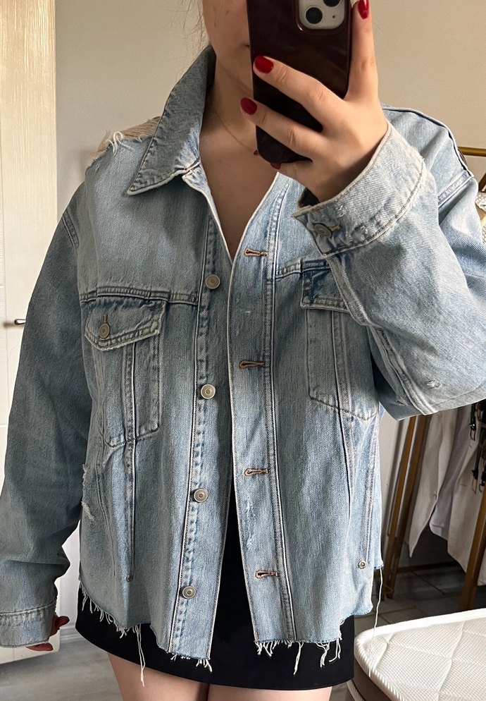 Düğmeli Mavi Denim Ceket