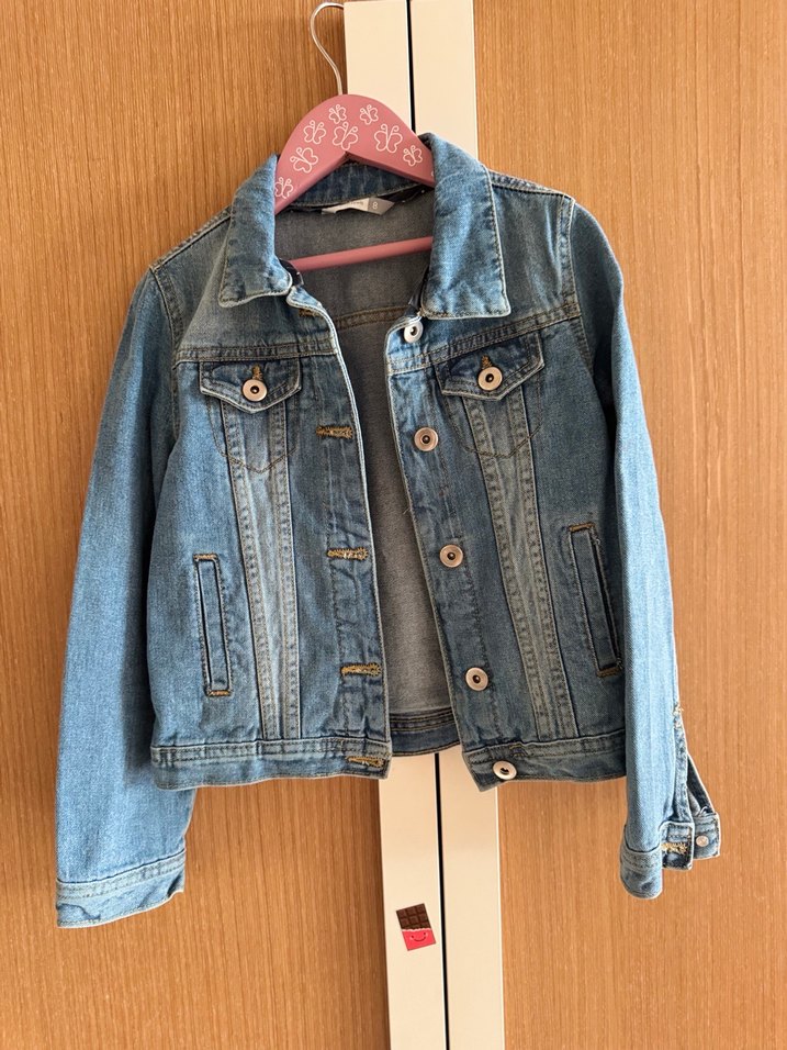 Uzun kollu, düğmeli, mavi denim ceket. Notch yaka ve dar kesimiyle günlük sokak stiline uygun.