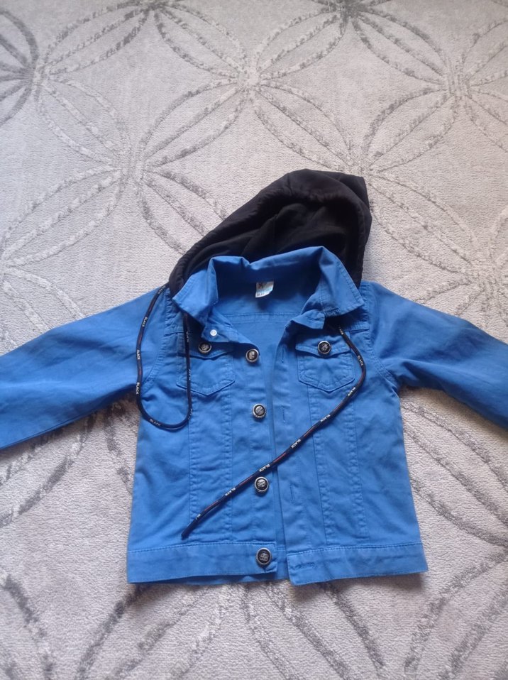 Düğmeli, mavi denim erkek çocuk ceketi,