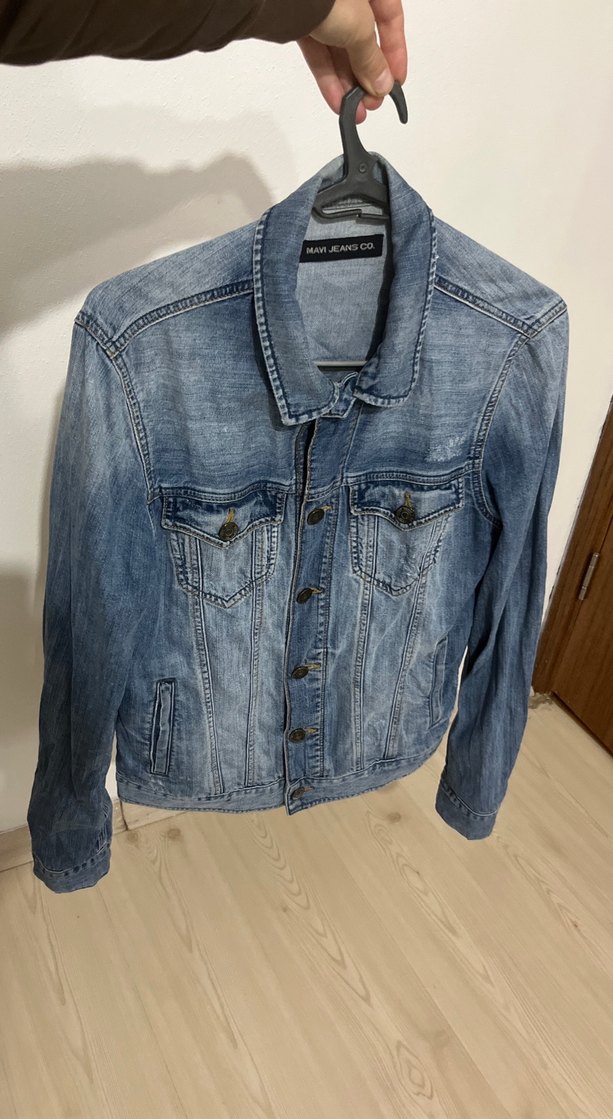 Düğmeli, uzun kollu, kesimi vücuda oturan mavi denim kadın ceket. Notlu yaka ve günlük kullanıma uygun sokak stili tasarım. Giyilmedi etiketi açıldı