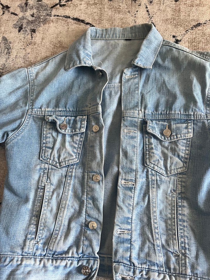 Düğmeli, uzun kollu, mavi denimden yapılmış, normal uzunlukta ve fitted kesim kadın ceketi. Notched lapel yaka ve günlük rahat stil için uygun.