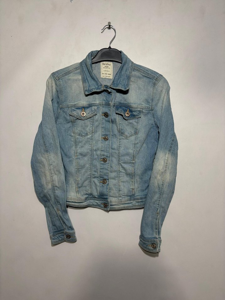 Düğmeli, uzun kollu ve kesimli mavi denim kadın ceket. Notlu yaka ve orta uzunlukta, günlük ve sokak stiline uygun rahat tasarım.