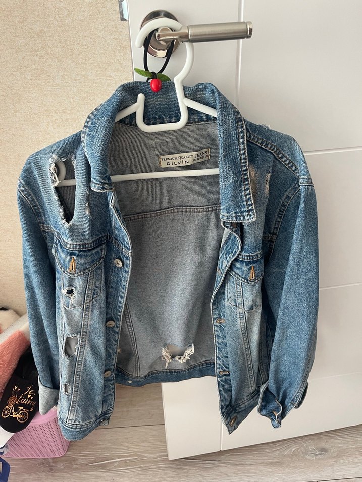 Mavi denim kumaştan, düğmeli ve kesimi vücuda oturan bu kadın ceketi, notched lapel yaka ve askılı kollara sahiptir. Günlük kullanıma uygun midi boyda, sokak tarzı bir parçadır.