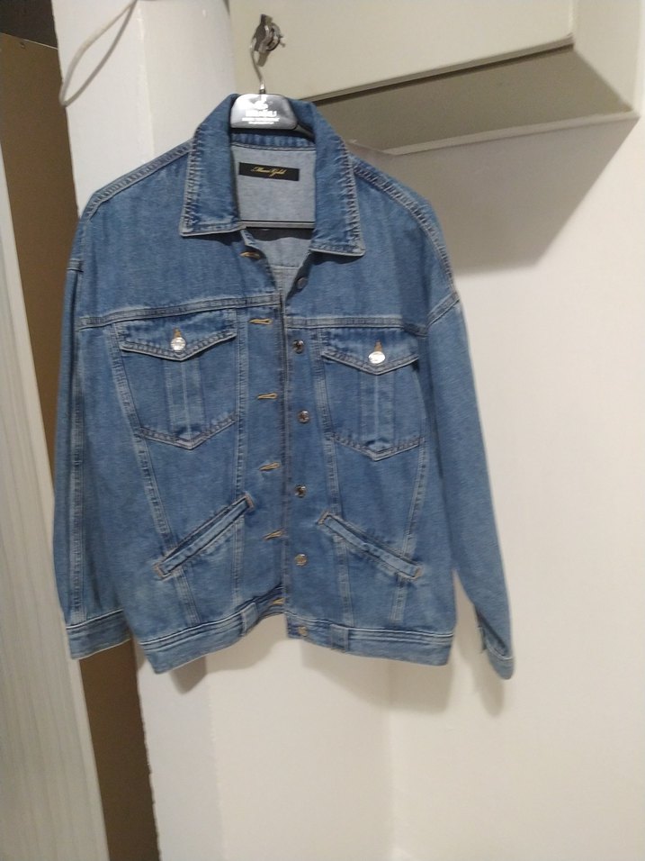 Mavi denim kumaştan, düğmeli, uzun kollu, notched yaka ve bol kesim günlük kullanıma uygun kadın ceket. Normal boyda ve desensizdir. Orjinal mavi jeans