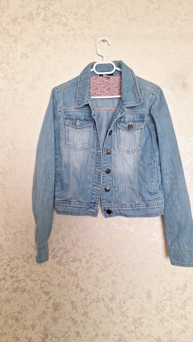 Düğmeli, uzun kollu, normal boy mavi denim ceket. Notch yaka ve dar kesim ile günlük sokak tarzına uygun bir parça.