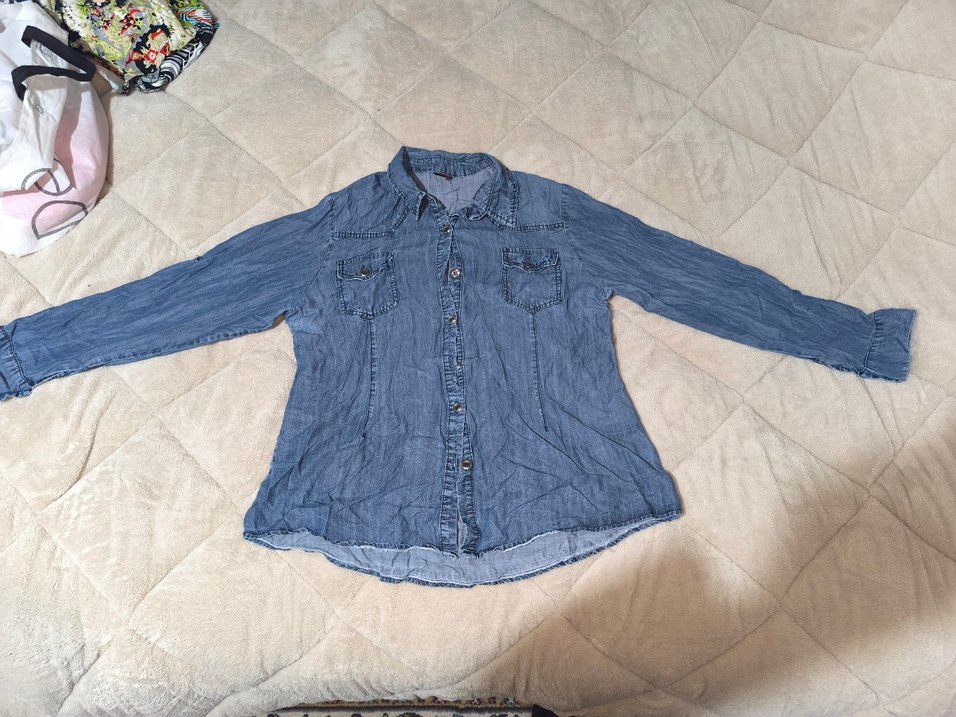Mavi denim kadın gömlek, düğmeli önde, uzun kollu ve yakalıdır. Salaş kesimi ve normal boyuyla gündelik rahat sokak stiline uygundur. Desensiz ve günlük kullanıma idealdir.