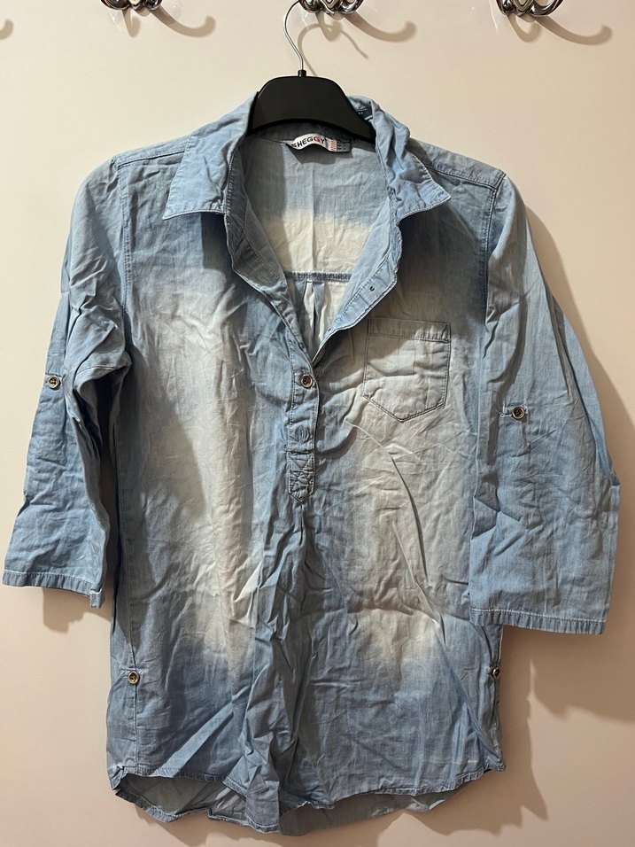Düğmeli Mavi Denim Kadın Gömlek