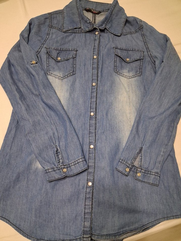 Düğmeli Mavi Denim Kadın Gömlek