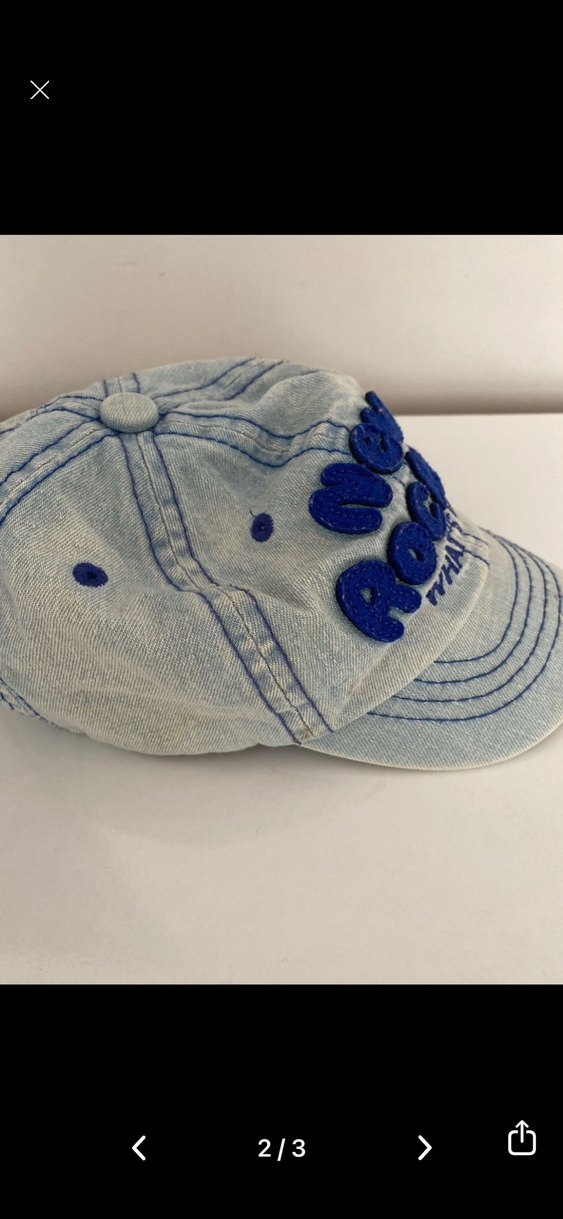 Düğmeli detaylı, canlı işlemeli yazılı mavi denim kadın şapkası. Bohem ve retro tarzlara uygun günlük kullanıma uygundur.