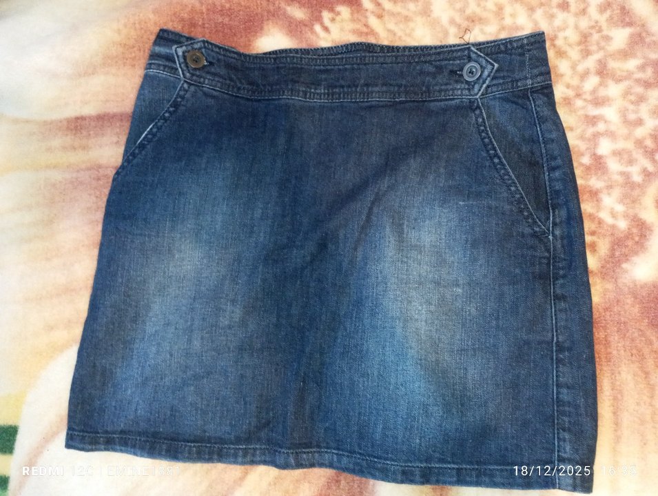 Bel kısmında düğme detaylı, bol kesim mavi denim midi etek, günlük kullanıma uygun parlak görünümlü.