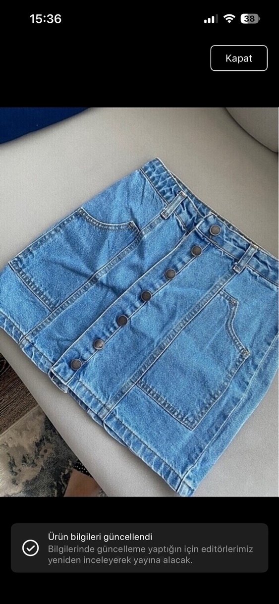 Düğmeli Mavi Denim Midi Etek