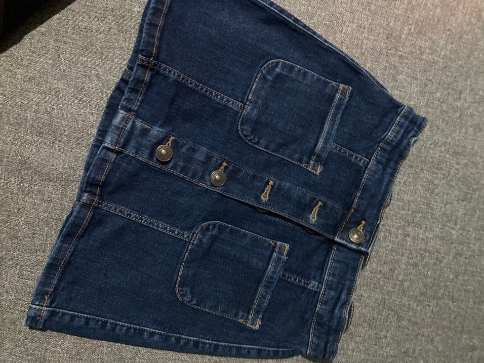 Düğmeli Mavi Denim Mini Etek