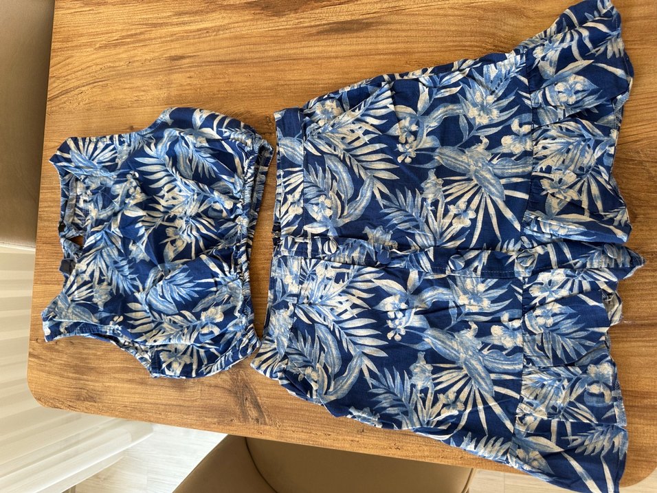 Düğmeli, mavi desenli bohem hamile şortu. Sentetik kumaştan, bol kesim ve kısa boyda, dış mekan kullanımı için uygun.