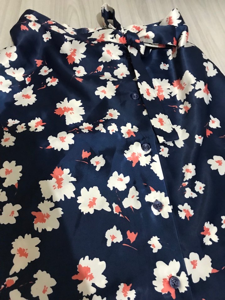 Düğmeli, uzun ve bol kesim hamile eteği, koyu mavi üzerine çiçek desenli, sentetik kumaştan üretilmiştir. Günlük kullanım için uygun, bohem ve Paris tarzını yansıtır.