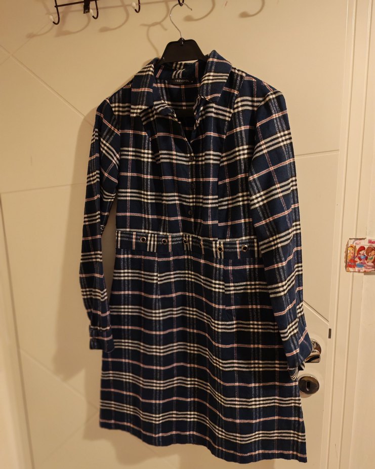Düğmeli Mavi Ekose Midi Hamile
