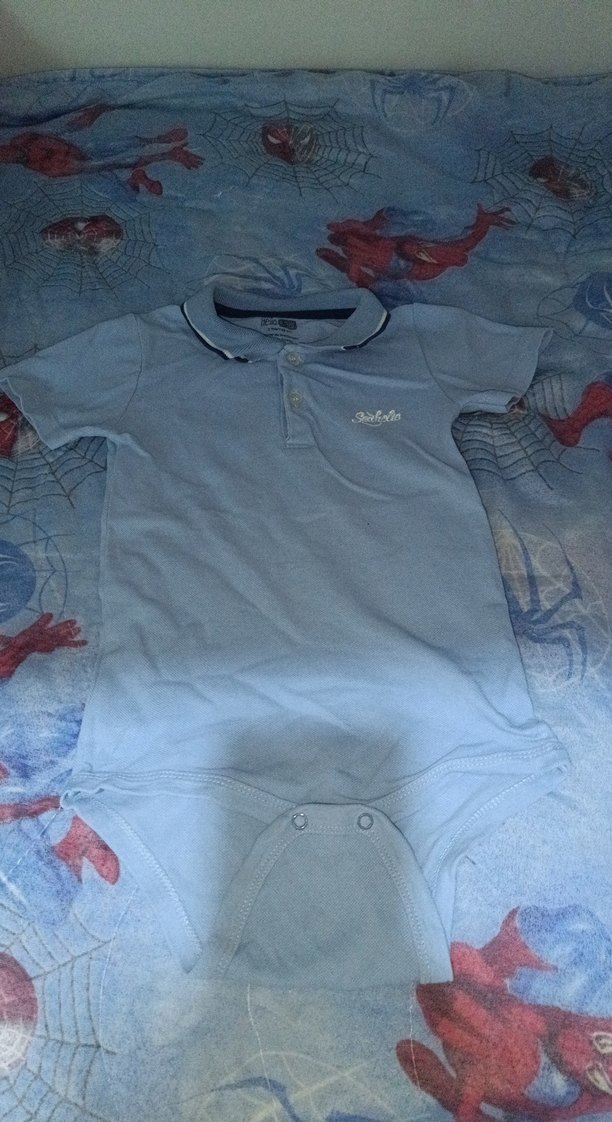 Düğmeli, polo yaka, kısa kollu mavi erkek bebek body, pamuklu yumuşak kumaştan, günlük sokak stili için uygun.