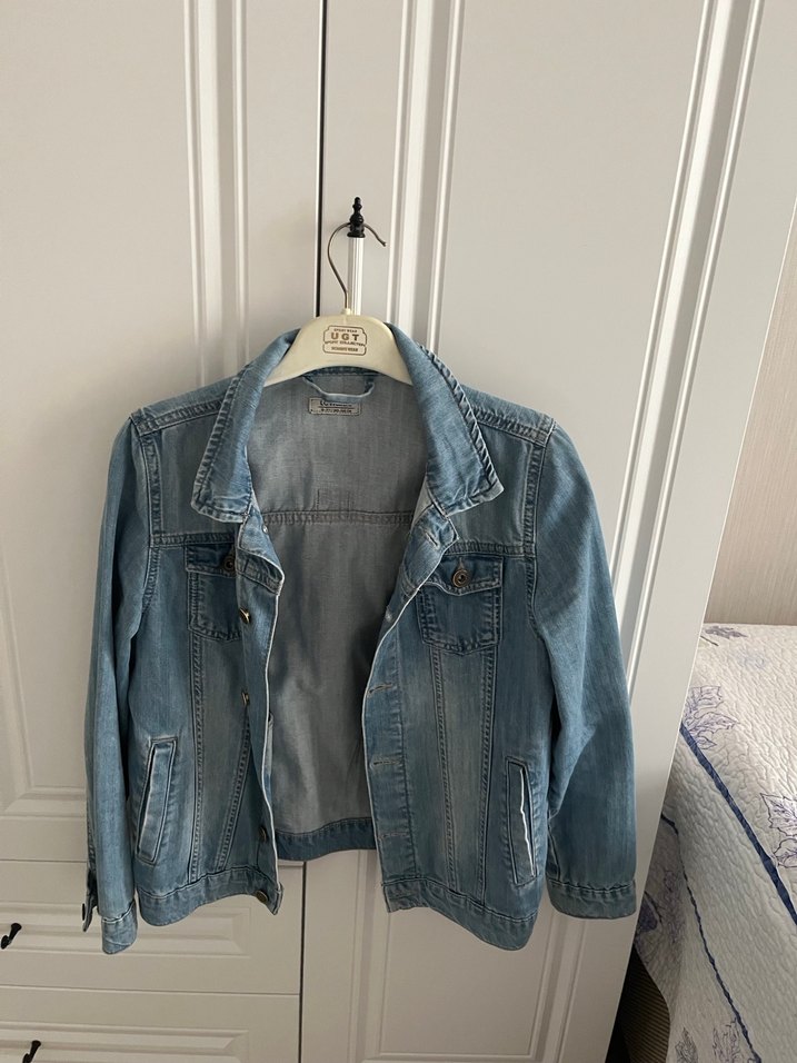 Düğmeli, uzun kollu, mavi fitted denim ceket. Notched lapel yakalı ve günlük kullanıma uygun casual tarzda.