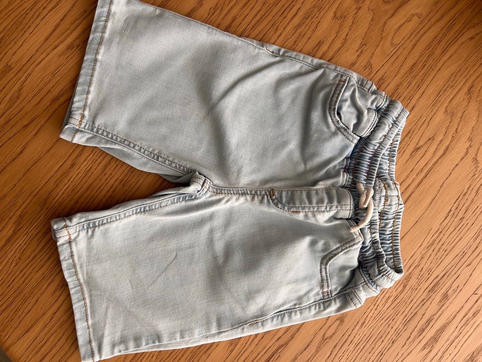 Düğmeli, mavi kot pantolon, erkek çocuklar için. Sade ve düz tasarıma sahip, rahat ve temel stil.