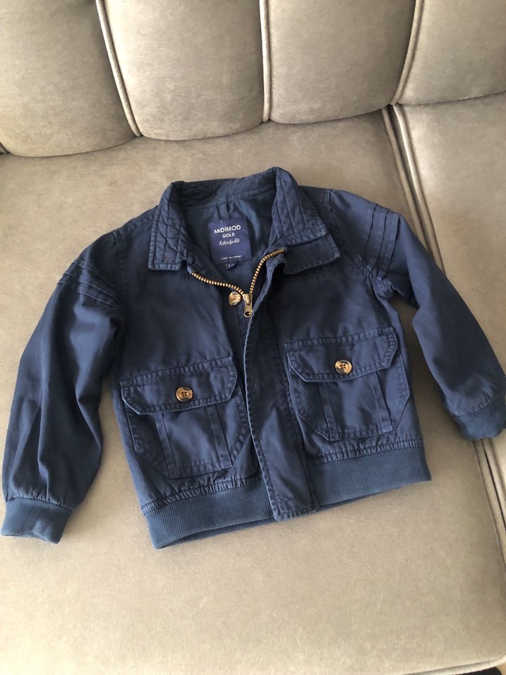 Parlak mavi renkli, düğmeli ve cepli erkek denim ceketi. Notlu yaka ve bol kesim ile rahat bir tarz sunar.