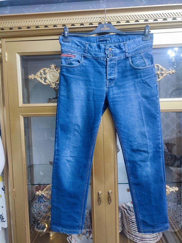 Düğmeli, normal boy, mavi renk erkek denim pantolon. Günlük kullanıma uygun, rahat kesim ve desen içermeyen tarzda.orjinal Tommy Hilfiger kot boy bayan giyebilirsiniz unitex model