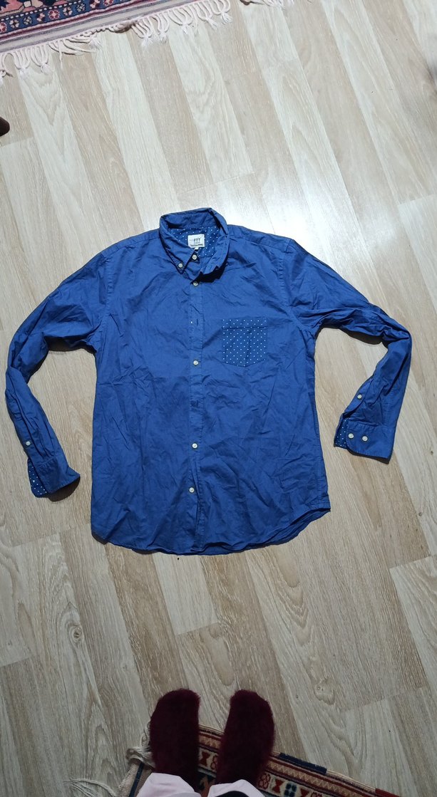 Düğmeli, uzun kollu, yakalı erkek kot gömlek. Koyu mavi renkte, normal boyda ve rahat kesim. Sokak tarzı ve günlük kullanıma uygun. Sorunsuz. ön uzunluk: 77cm göğüs: 55cm