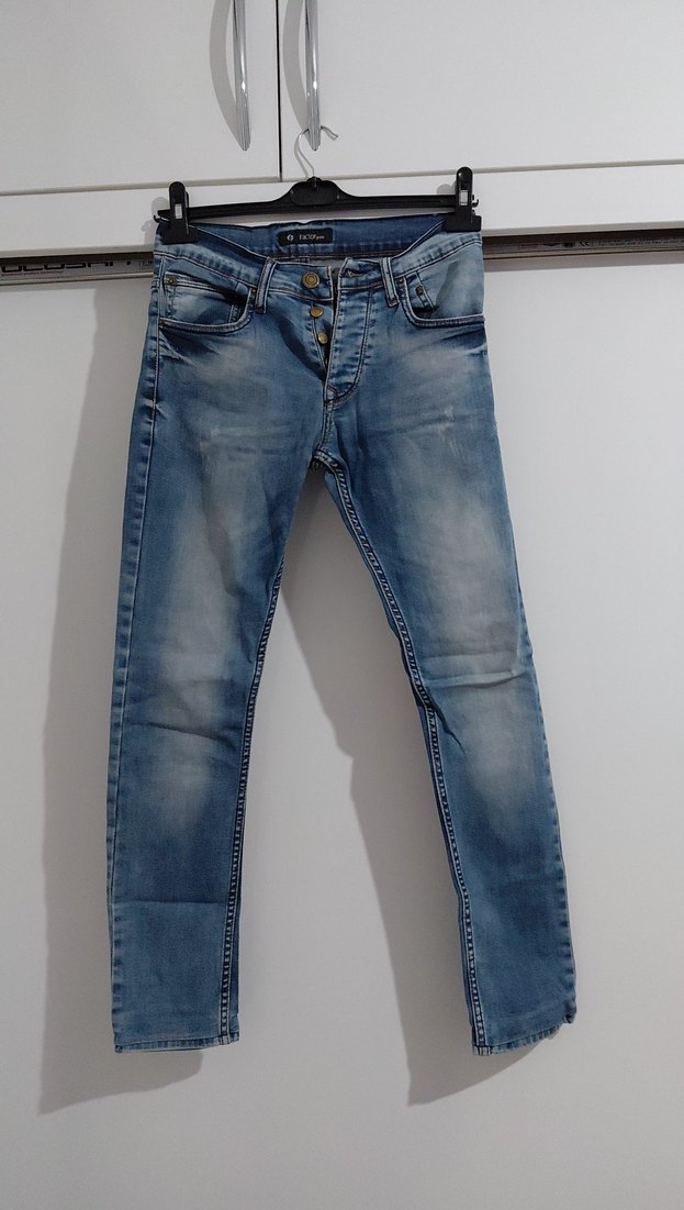 Düğmeli Mavi Erkek Kot Pantolon