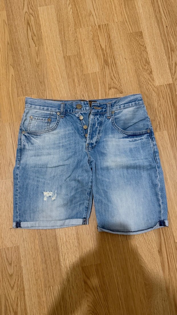Düğmeli Mavi erkek Kot Şort