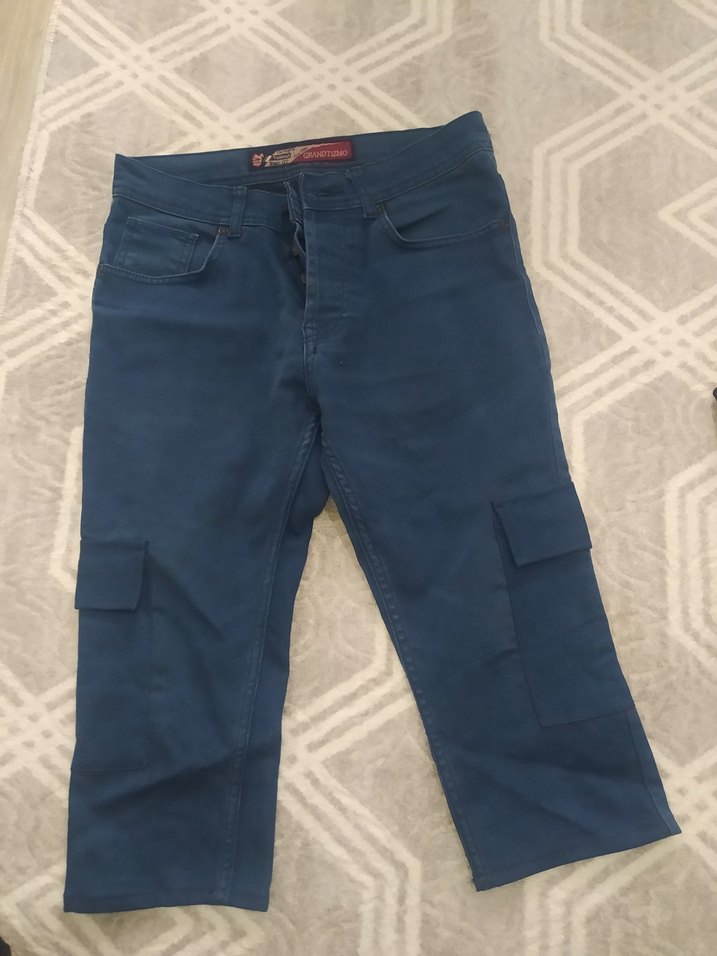 Düğmeli Mavi Erkek Midi Kot Pantolon